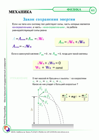 Механическая энергия: В механике общая энергия (сумма кинетической и потенциальной энергии) в замкнутой системе сохраняется. Например, при свободном падении объекта его потенциальная энергия уменьшается, но кинетическая энергия увеличивается на такую же величину.