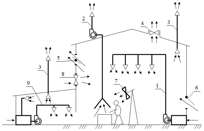 Вытяжная местная канальная система с механическим побуждением движения воздуха;