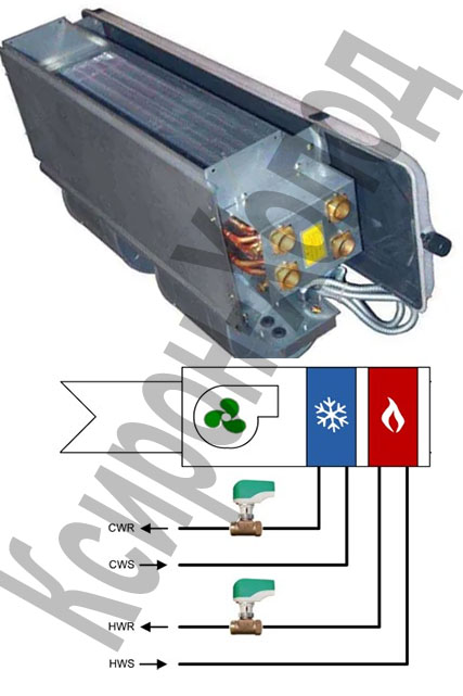 Зависимость - Фанкойл: Фанкойлы зависят от поставки охлажденной или нагретой воды.
