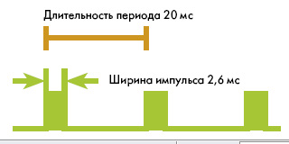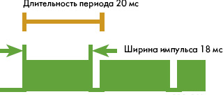 Технические детали и диагностика - Модуляция сигнала: Импульсы сигнала модулируются с частотой 50 Гц, что соответствует периоду в 20 мс (100%). Например, при давлении 0.14 МПа (1.4 бар) ширина импульса составляет 2.6 мс (13% периода), а при давлении 3.7 МПа (37 бар) — 18 мс (90% периода).