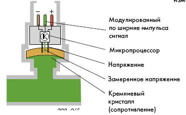 - Электрическое преобразование: Кристалл, интегрированный с микропроцессором и подключенный к источнику напряжения, генерирует изменяющееся напряжение в зависимости от степени своей деформации.