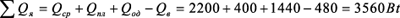 2. От солнечной радиации (подсчитано ранее) Qcр