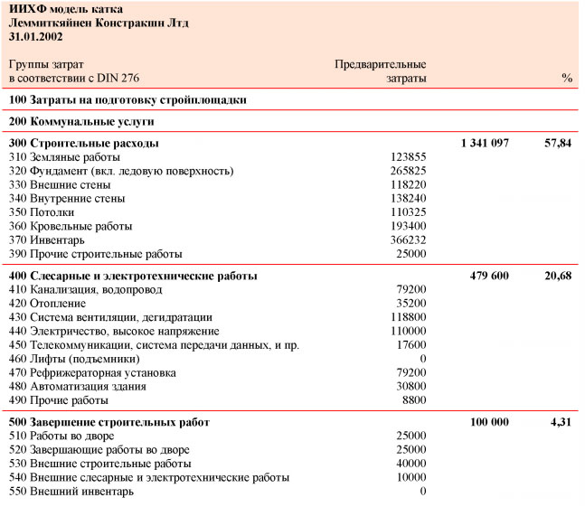 - Стандарты калькуляции: Смета ИИХФ основана на немецком стандарте DIN 276, широко применяемом в Европе, что обеспечивает возможность адаптации калькуляции под различные международные стандарты.