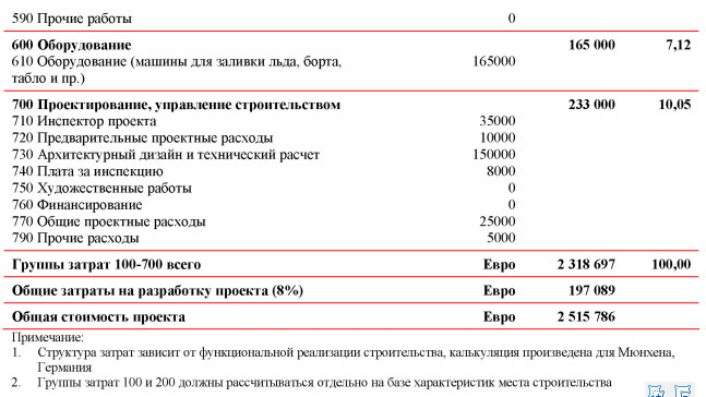 Данный проект представляет собой оценочную стоимость создания катка «под ключ» по модели ИИХФ, предоставляя разработчикам, инвесторам и любителям спорта представление о потенциальных расходах. Важно отметить, что эта смета не является окончательной гарантией стоимости, но служит важным инструментом планирования.