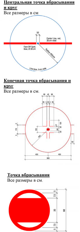 Маркировка для вбрасываний предназначена для определения точного местоположения игроков в момент начала игры, после остановок и перед каждым периодом.
