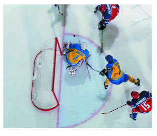 - Ледовая арена разделяется на зоны с помощью пяти линий, простирающихся поперек поля, что помогает организовать игровое пространство и упрощает судейство.
