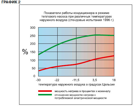 Во всех перечисленных случаях основная неприятность заключается в низкой производительности теплообменника и его блока при понижении температуры наружного воздуха. Эффективных методов ее повышения пока нет. Таким образом выходит, что эксплуатирование оборудования при отрицательных температурах приводит к дорогостоящим поломкам, поэтому не рекомендуется использовать кондиционер «на тепло» в холодное время года.