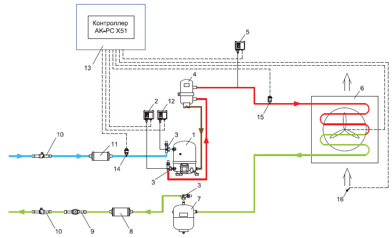 Холодильная машина с конденсатором воздушного охлаждения и ступенчатым регулированием давления конденсации - Компрессор Danfoss