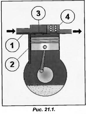 Наиболее частой причиной разрушения клапанов является гидроудар, возникающий в магистрали всасывания и захватывающий цилиндры компрессора. Если жидкий хладагент или масло поступают на вход в компрессор (поз.1 рис. 21.1), то часть жидкости не следует по отверстию возврата масла (поз.2) в карте, а попадает в цилиндры. Поскольку жидкость несжимаема и ее скорость меньше скорости газов, которые проходят через нагнетательные клапаны, то в цилиндре во время его подъема развивается слишком высокое давление.