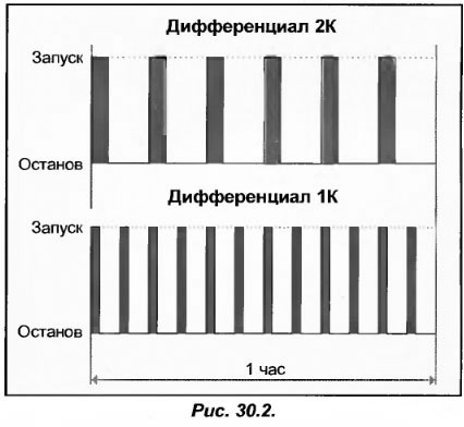Таким образом, если в нашем кондиционере, к примеру, задан диапазон 2 К, то потребность в холоде составит 2,5кВт, и термостат будет запускать компрессор 6 раз в час (рис.30.2). Для аналогичной потребности в холоде (2,5кВт), но с вдвое меньшим диапазоном на термостате (1 К), компрессор станет запускаться в два раза чаще (12 раз).