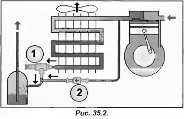 При снижении давления конденсации ниже величины, предусмотренной настройкой клапана, (поз.1 рис.35.2) поступление жидкости из конденсатора в ресивер перекрывается. Жидкость больше не может спокойно поступать в ресивер и ее уровень в конденсаторе поднимается, а поверхность теплообмена снижается. В это время жидкость продолжает поступать из ресивера на вход в ТРВ и давление в нем начинает снижаться (ресивер больше не получает жидкости).