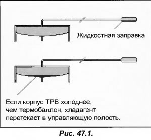 В обратном случае независимо от причины, жидкость, по принципу холодной стенки Ватта, окажется в управляющей полости ТРВ (рис.47.1).