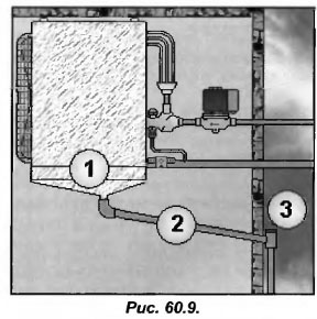 В испарителях данного типа температура воздуха в охлаждаемом объеме является существенно ниже 0 С. Поэтому для удаления влаги при оттайке сливной поддон (1) и патрубок (2) испарителя обеспечивают дополнительными электронагревателями (рис.60.9). Причем электронагреватель сливного патрубка 2 должен выступать за границы охлаждаемого объема.