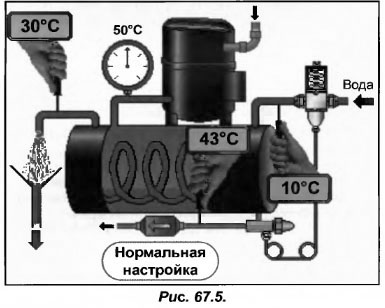 Но увеличив рост ВД, потребность в электроэнергии возрастет, а холодопроизводительность снизиться. Другим негативным последствием роста ВД станет чрезмерное повышение температуры нагнетания, что может стать причиной повышения кислотности масла и его разложения. Поэтому, чтобы настройка регулятора VР была выполнена верно необходимо искать компромиссное решение между высоким и низким значением ВД (рис.67.5).