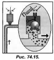 Дренажный клапан рекомендуют устанавливать в верхней точке закрытого контура (рис.74.14). Он предназначен для удаления воздуха и растворенных в воде газов из контура. Если воздуха нет, поплавок дренажного клапана находится в верхнем положении и клапан остается закрытым. При попадании воздуха он накапливается в верхней части клапана, игла отходит от седла и происходит стравливание воздуха.