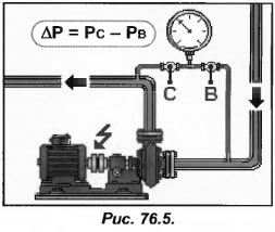 Давление (напор) насоса определяется следующим образом: Рн=Рс-Рв.