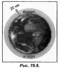 Причиной давления является взаимодействие жидких, твердых и газообразных тел. Так по мере закачивания газа в сосуд, давление повышается. Например, возьмем автомобильную шину, в которой без воздуха нельзя создать давление. А в космическом пространстве находится мало частиц воздуха, в связи с чем там давление близко к абсолютному вакууму. Для абсолютного вакуума характерно полное отсутствие материальных частиц, и в этом случае будет иметь место абсолютное давление. Атмосферное давление создается толщиной воздушного слоя окружающего Землю (рис.78.6), который расположен на 20 км вверх.