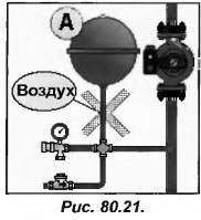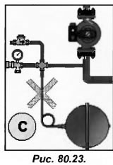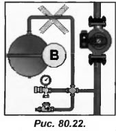 Если бачок установлен клапаном вниз (поз. В рис.80.22), то соединяющая его с контуром трубка должна быть небольшой по диаметру и не иметь зон, которые могут препятствовать движению воды.