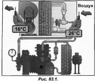 На рис.83.1 изображен небольшой кондиционер. Сравним его номинальные рабочие параметры с параметрами устройства для производства ледяной воды с конденсатором воздушного охлаждения (рис.83.2).