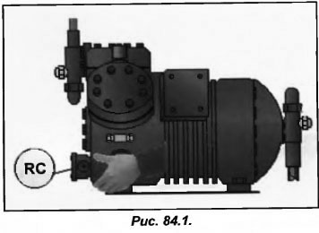 Данный уровень легко определить простым ощупыванием картера (рис.84.1). Если при выключенном компрессоре картер остается холодным, то проблема может заключаться в цепи электропитания картерного нагревателя. При этом следует соблюдать осторожность, поскольку в непосредственной близости нагревателя температура картера может оказаться дольно высокой, в результате чего можно обжечься.
