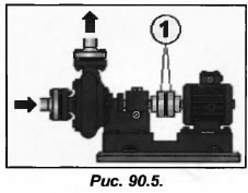 У насосов большой мощности двигатель отделяют от крыльчатки (рис.90.5). При этом одна втулка будет являться осью двигателя, а вторая – осью крыльчатки. Между собой их соединяют пальцами с твердой резиновой оболочкой.