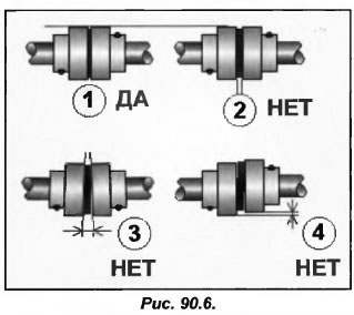Соответствие осей двигателя и крыльчатки не всегда полностью совпадают (вариант 1 рис. 90.6). В результате возможных угловых или осевых отклонений соединения быстро разрушаются.