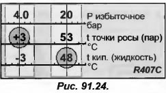Высокое давление (ВД) 20 бар совпадает с температурой кипения 48 С, а низкое давление (НД) 4 бара соответствует температуре точки росы +3 С (рис. 91.24).