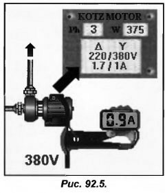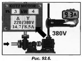После того как насос запущен необходимо убедиться, что потребляемая двигателем сила тока не больше величины, указанной, на шильдике двигателя (рис.92.5).