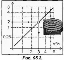 Используя гидравлическую характеристику испарителя (рис.95.2), определяем потери давления – 2 м вод. ст. и расход – 3м3/ч.