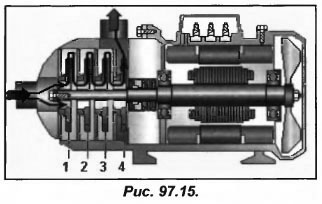 Имеются насосы с изначально предусмотренными последовательными ступенями (рис.97.15). Это многоступенчатые насосы, позволяющие получать определенное давление. Предположим, что нам необходимо поднять на поверхность воду из колодца, расположенного на глубине 200 м. После погружения такого насоса ему предстоит создать давление более 200 м вод. ст. (20 бар), с чем одноступенчатому насосу не справиться.