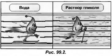 Дело в том, что при понижении температуры, гликолевый раствор становится более вязким, что делает его липким (рис.99.2). В результате потери давления увеличиваются, причем для всех элементов контура. В некоторых случаях потери становятся весьма значительными.