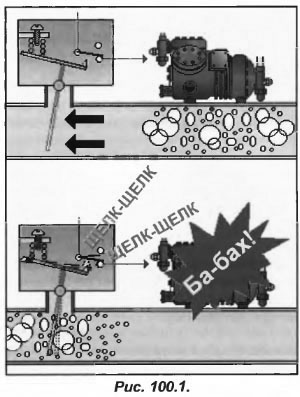 Во время прохождения воздушных пузырей сила давления, действующая на пластину, становится меньше, и контакты могут разомкнуться или работать в режиме «дребезга». То есть постоянно размыкаться или замыкаться, в зависимости от величины воздушных пузырей (рис.100.1).