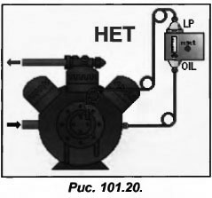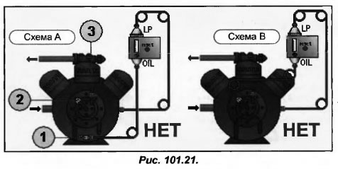 Считается, что выполнять подключение сильфонов OIL нельзя ни к отверстию для заполнения насоса маслом, ни к сливному отверстию (схема В рис.101.21).