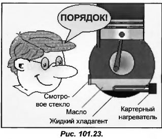 Иногда встречаются ситуации, когда уровень масла кажется нормальным, но это ошибочное впечатление, поскольку в картере находится много жидкого хладагента (рис.101.23). При данной неисправности произойдет вскипание хладагента и отбор масла из компрессора с его последующей поломкой.