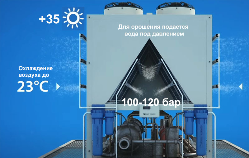 Заключение: Эффективное использование адиабатического охлаждения требует не только правильной эксплуатации, но и особого внимания к качеству используемой воды и регулярному техническому обслуживанию системы, чтобы предотвратить проблемы, связанные с загрязнением и накипью.