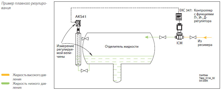 Двухпозиционное и плавное регулирование В данной таблице приведены основные сокращения, которые необходимо знать всем начинающим мастерам, у которых нет специального образования. Сокращения и определения Двухпозиционное (вкл/откл) регулирование В некоторых случаях для поддержания заданного параметра возникает потребность в использовании двухпозиционного регулирования. Это может быть вентиль или реле температуры, которое находится в двух положениях переключения (открытом/закрытом или замкнутом/разомкнутом состоянии). Используется двухпозиционное регулирование также в системах, в которых учтены принципы ПИД-регулирования. Так, в некоторых из них применяется двухпозиционный вентиль AKV/A, который регулирование перегрева хладагента осуществляет при помощи электронного ПИД-регулятора. В свою очередь регулятор действует в пределах диапазона, ограниченного минимальным и максимальным значением. К основным преимуществам двухпозиционных регуляторов следует отнести: незначительное изменение регулируемого параметра, простоту конструкции, отсутствие контура обратной связи и доступную стоимость. Рассмотрим пример двухпозиционного регулирования С целью поддержания уровня жидкости в пределах между максимальным и минимальным значением используем двухпозиционный регулятор AKS 38. Он имеет вид поплавкового реле, управлением которого занимается двухпозиционные поплавковые вентили. Плавное регулирование В отличие от систем двухпозиционного регулирования системы плавного регулирования более восприимчивы к изменениям регулируемой величины. Здесь при помощи электронных регуляторов (контроллеров) можно менять законы регулирования (пропорциональный, дифференциальный и интегральный), что делает их более универсальными, и позволяет использовать в различных схемах регулирования. Основные правила регулирования, согласно которым можно менять следующие параметры: - В П-контроллерах меняются параметры РВ и Kp;