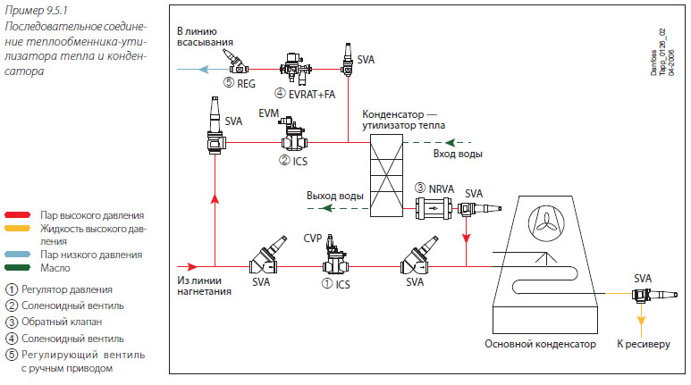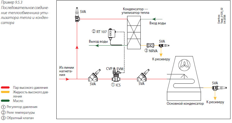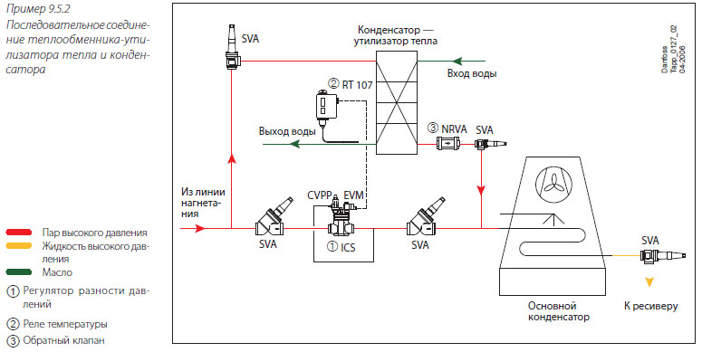 - система охлаждения должна выполнять свое основное назначение, независимо от работы агрегата по утилизации тепла. Если она не работает, давление конденсации не будет превышать установленной нормы. Что касается систем с сухим расширением, то для них давление конденсации не может быть чрезвычайно низким.