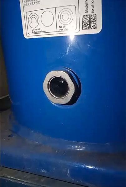 На фото смотровой глазок и низкий уровень масла в компрессоре Ошибка низкое давление масла Ошибка «низкое давление масла» в работе чиллера указывает на проблему, связанную с системой смазки компрессора чиллера. Давление масла критически важно для правильной работы и долговечности компрессора, который является сердцем системы чиллера. Вот некоторые распространенные причины и решения для низкого давления масла в системах чиллеров: На фото смотровой глазок уровня масла На фото необходимый уровень масла - Низкий уровень масла: Проверьте уровень масла в компрессоре. Если он низкий, добавьте соответствующий тип масла в систему. Убедитесь, что масло совместимо со спецификациями чиллера.