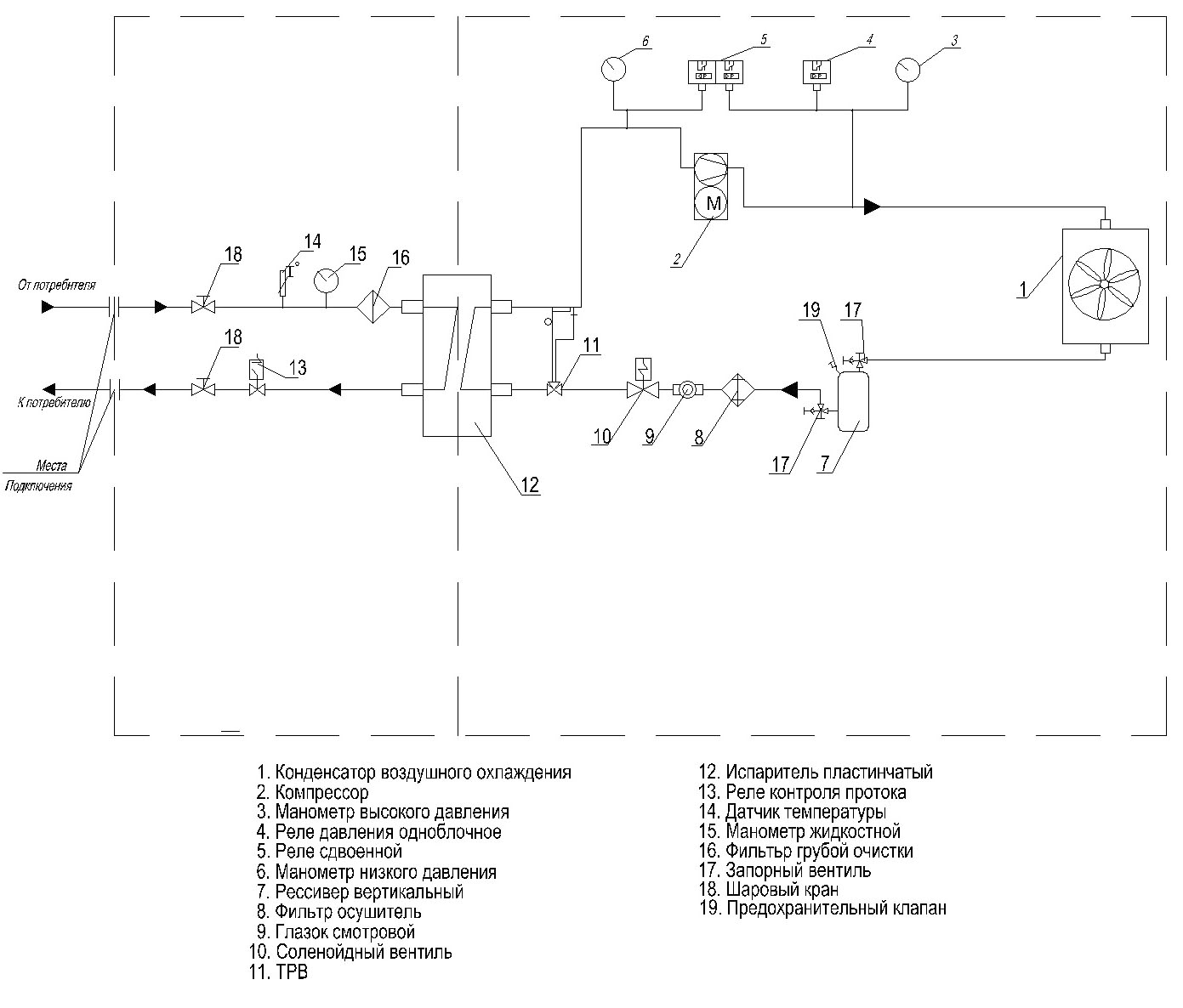 На фото — схема чиллера для чиллеров с воздушным конденсатором.