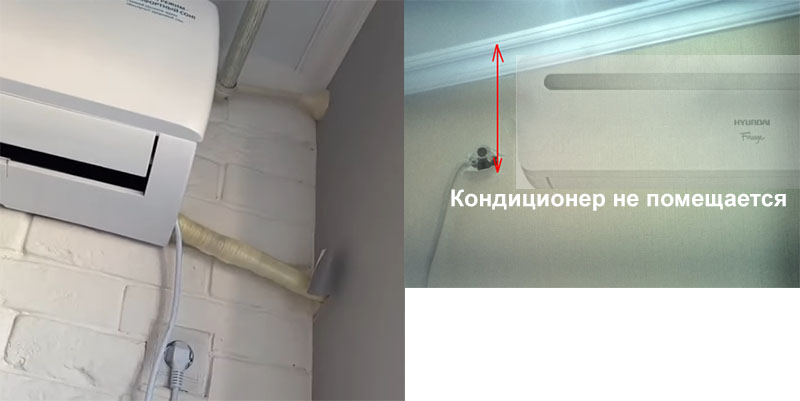 Внутренний блок не помещается или не заложена заранее штроба под трубы и кабель Неправильное расположение наружного блока - Размещение наружного блока в неподходящем месте может привести к его перегреву, увеличению шума и снижению общей эффективности системы.