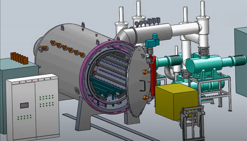Улучшенная плотность и микроструктура: Применение давления помогает уменьшить пористость и улучшить микроструктуру материала, что приводит к улучшению его механических свойств. Высокая чистота обработки: Вакуум в камере печи предотвращает окисление и загрязнение материала в процессе обработки. Возможность обработки сложных материалов: Технология позволяет эффективно обрабатывать трудноплавкие металлы, керамику и композитные материалы. Эффективное управление процессом: Современные компрессионные вакуумные печи оснащены системами управления, позволяющими точно контролировать температуру, давление и время обработки. Применение Производство керамических и металлокерамических изделий: Горячее прессование в вакууме используется для получения высокоплотных керамических деталей с высокими механическими характеристиками. Создание композитных материалов: Технология позволяет производить композиты с равномерным распределением компонентов и улучшенными свойствами. Обработка трудноплавких металлов и сплавов: Компрессионные вакуумные печи применяются для спекания и уплотнения высокотемпературных сплавов, используемых в авиационной, космической и энергетической отраслях. Компрессионные вакуумные печи представляют собой сложное и высокоэффективное оборудование, требующее значительных инвестиций, но обеспечивающее высокое качество обработанных материалов. Они играют ключевую роль в развитии новых материалов и технологий в различных сферах промышленности. Термическая вакуумная печь Термическая вакуумная печь — это специализированный тип печи, используемый для проведения термической обработки различных материалов, включая металлы, сплавы, керамику и композиты, в условиях пониженного давления или вакуума. Эти печи обеспечивают высокую степень контроля над атмосферой внутри камеры, что позволяет избежать окисления, уменьшить загрязнение обрабатываемых материалов и улучшить качество итоговых продуктов. Термическая обработка в вакууме находит широкое применение в авиационной, аэрокосмической, автомобильной промышленности и других областях, где требуется высокая чистота и точность обработки.