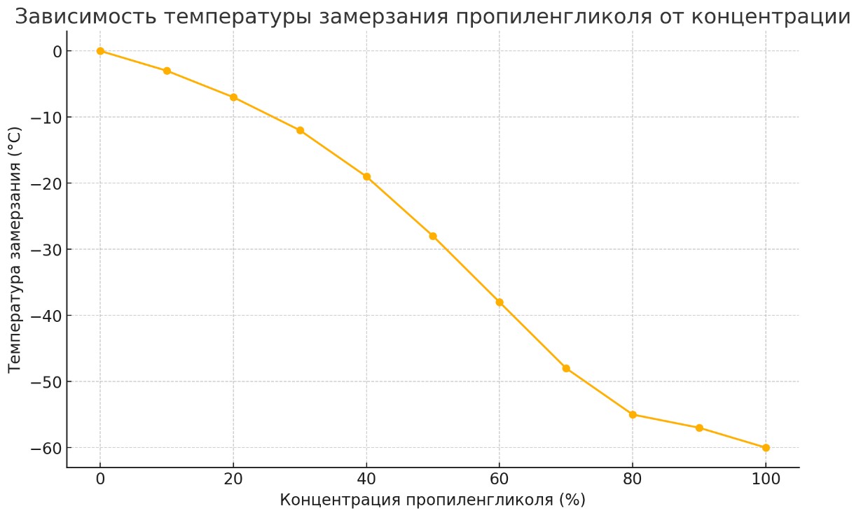 На фото зависимость температуры замерзания этиленгликоля от температуры На фото зависимость температуры замерзания этиленгликоля от температуры Различия между пропиленгликолем и этиленгликолем - Токсичность: Пропиленгликоль менее токсичен и безопасен для использования в контакте с пищевыми продуктами и людьми, тогда как этиленгликоль ядовит и может быть опасен при проглатывании.