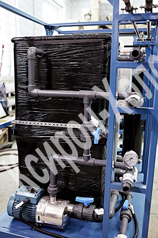 На фото встроенный гидромодуль чиллера Эти задачи делают чиллеры незаменимыми в современном производственном процессе флексографической печати, где важно поддерживать высокое качество продукции и стабильную работу оборудования.